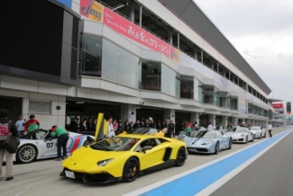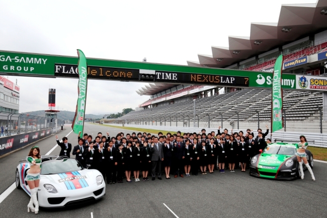 サーキットにNEXUSがサポートするチームのレーシングカーやポルシェ、ランボルギーニ、フェラーリ、アストンマーティンといったスーパーカーを用意。