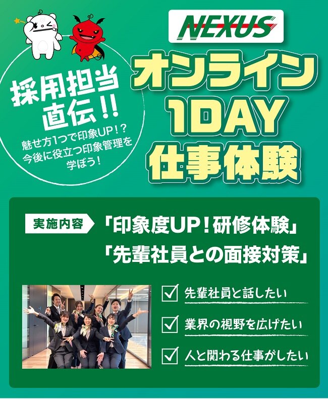 NEXUSでは(2024年度卒)学生の皆さんに業界研究・企業研究の一環として、インターンシップ生を募集します。 まずは下記サイトより詳細をご確認ください↓