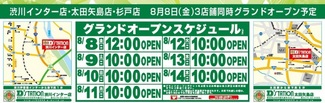 さて、このたびD’ステーションの新店舗「渋川インター店」「太田矢島店」「杉戸店」を下記のとおりグランドオープンする運びと相成りました。これもひとえに皆様方のご愛顧の賜物と感謝いたしております。