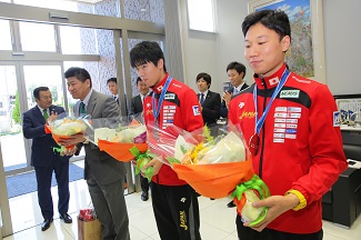 西藤選手「初出場ですが、試合に集中でき、ベストを尽くし銀メダルを獲得する事ができました。東京オリンピックへ向けてさらに頑張っていきます。」敷根選手「初出場で銅メダルを獲得する事ができました。東京オリンピックまで残り3年間、金メダルを目指して頑張ります。」と意気込みを語りました。
